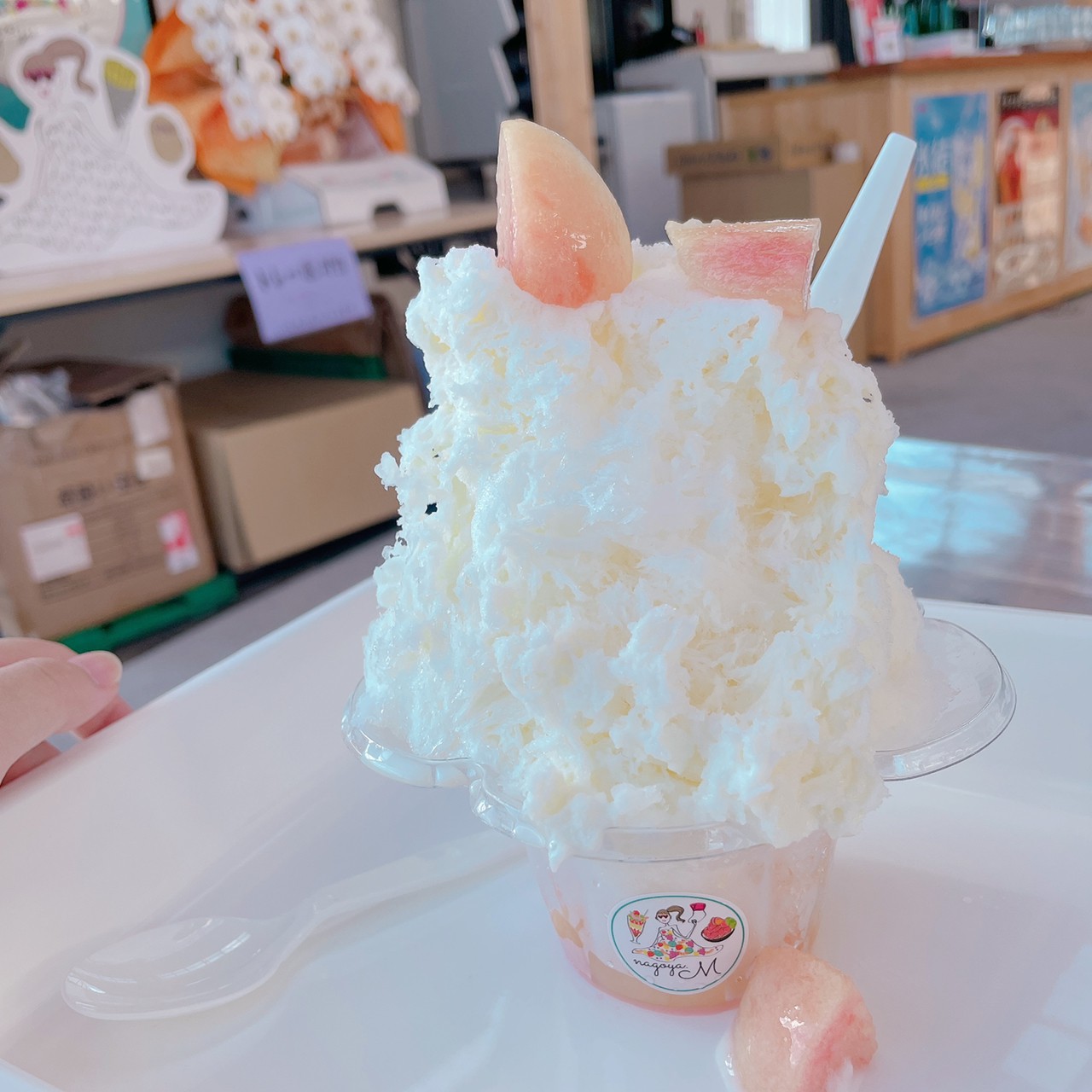 ミルクのかき氷にジューシーな桃が沢山入っていてとっても美味しい🍑