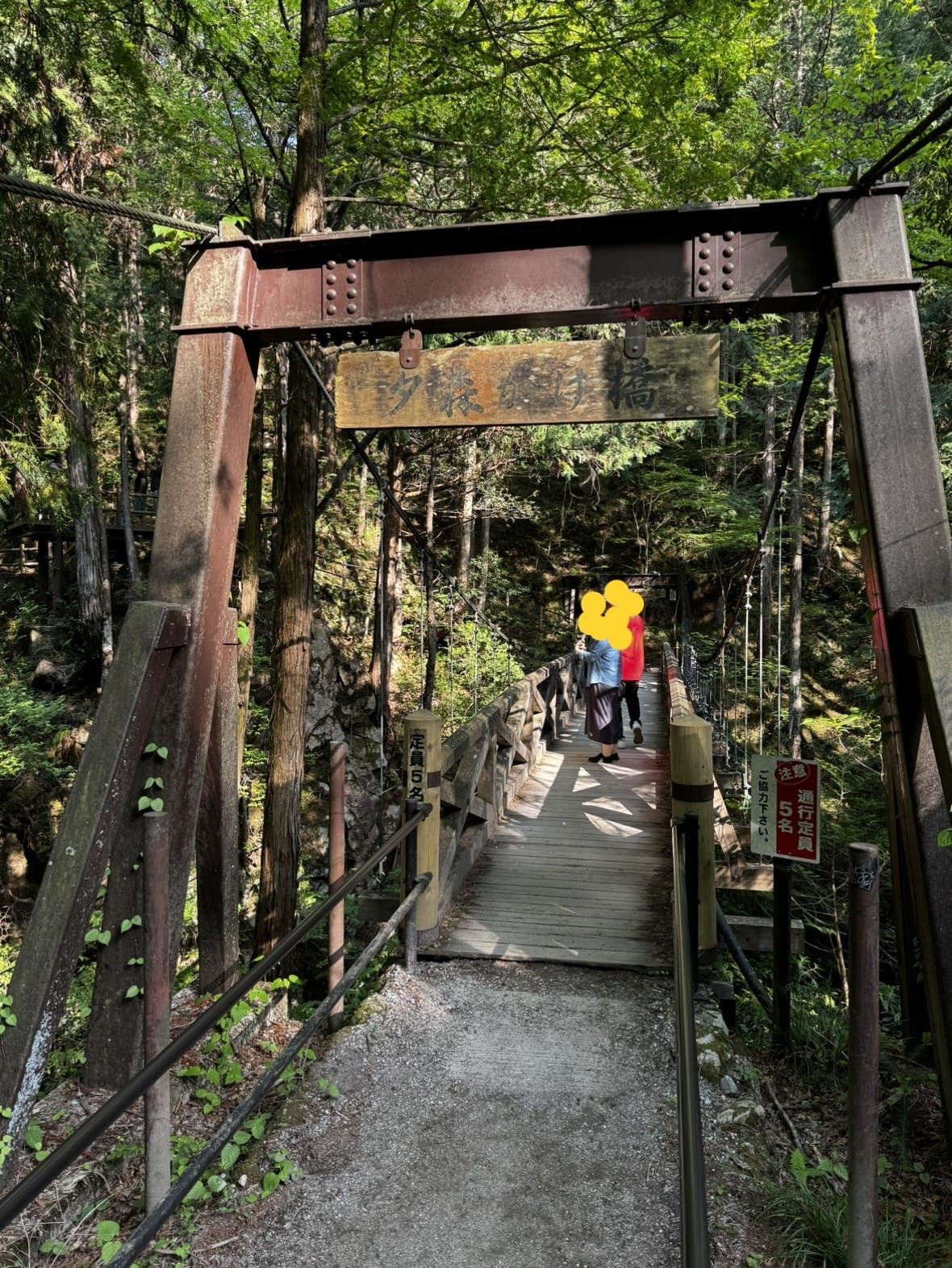 滝へ向かう道中、吊り橋効果抜群の「夕森かけ橋」なるものがありました。