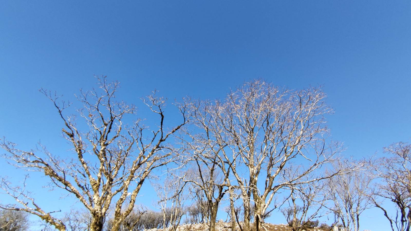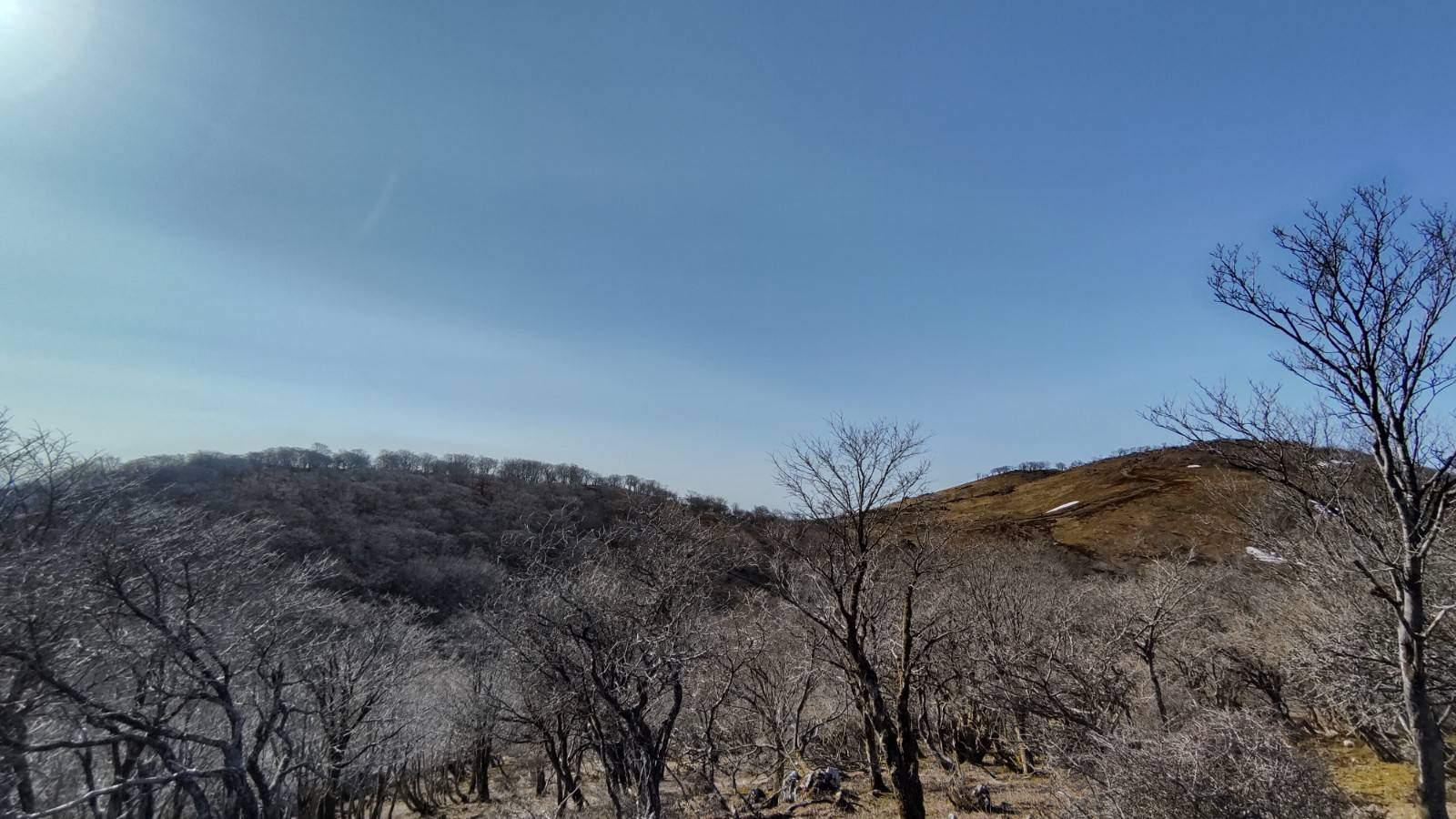 木が何となく白いのわかります?これ霧氷なんですよ!朝は冷えてました。
