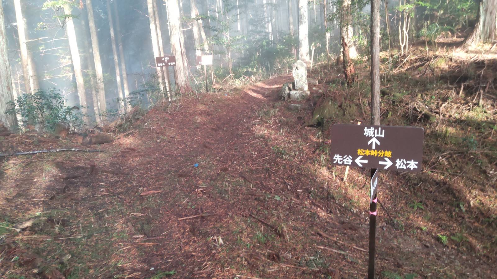 松本峠分岐まできましたので、お地蔵さんに手を合わせ、城山方面へ向かいます。