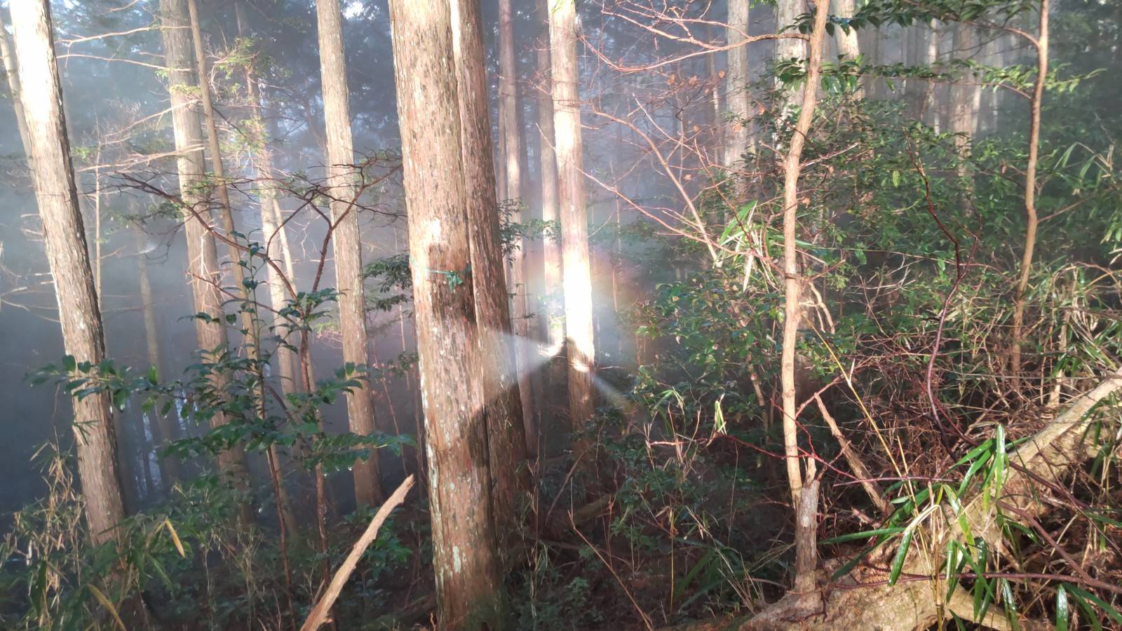登っている途中で、陽が昇ってきました。
