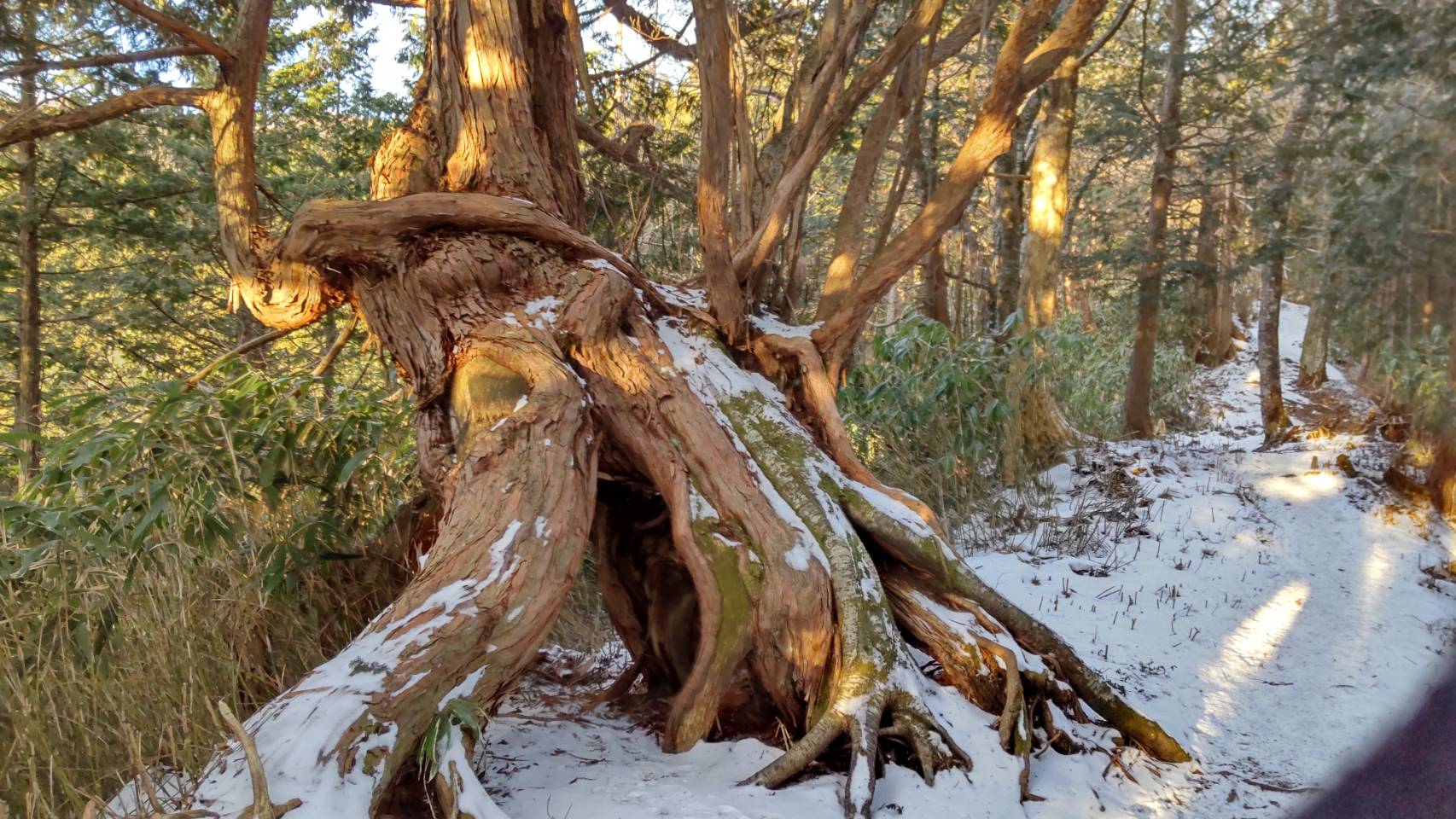 普段なら足元にあるクマザサは雪の下なのですが