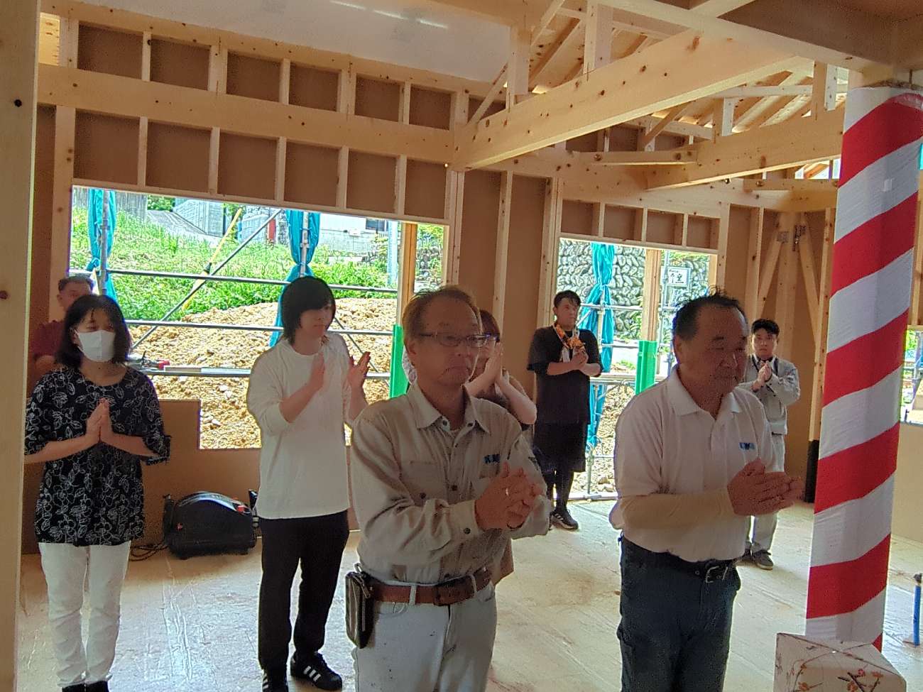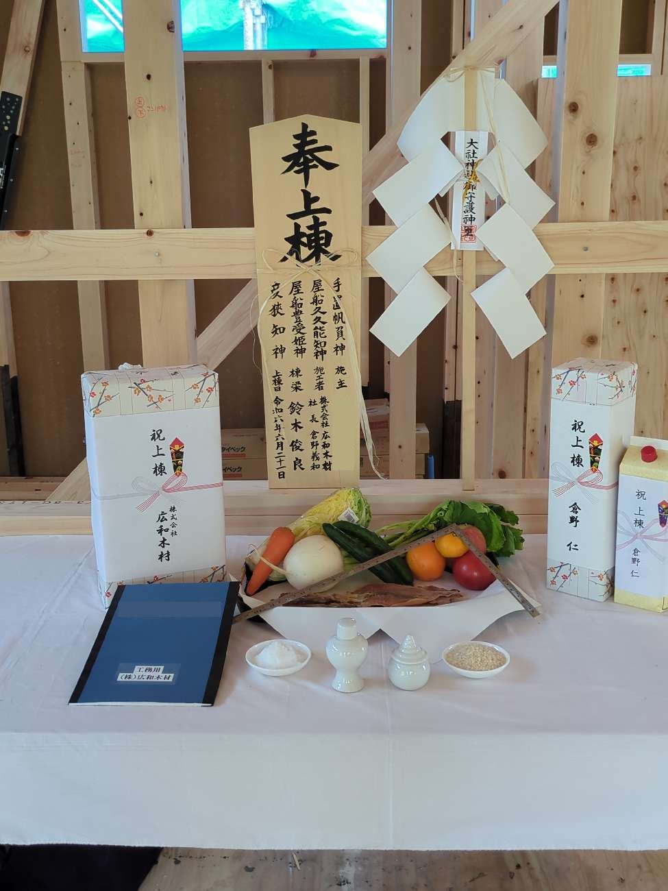 雨に降られることなく、好天に恵まれ予定通り上棟式を行う事が出来ました。