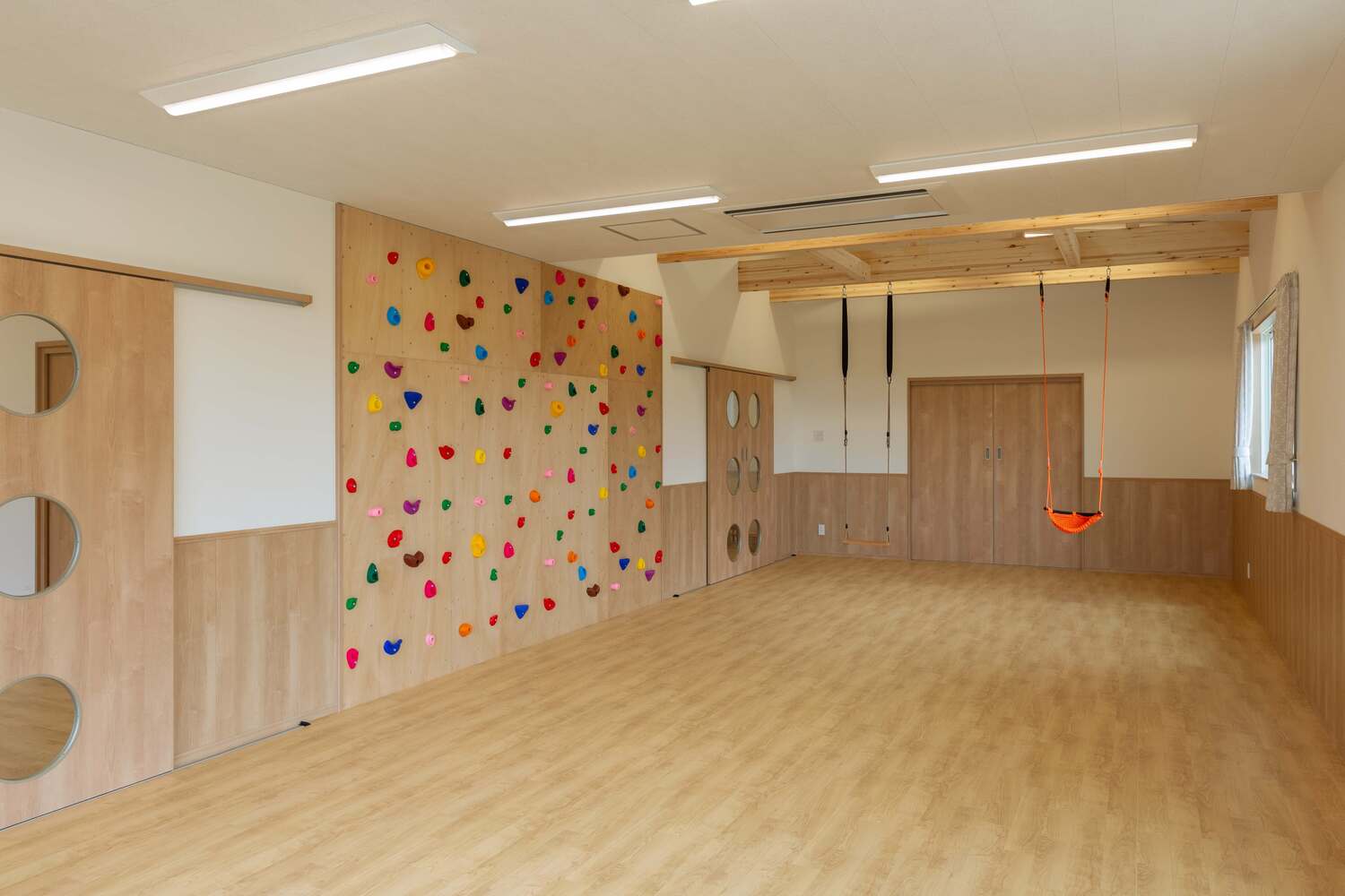 遊戯室はクライミングウォールとブランコがあり子供たちには楽しい場所になっています。