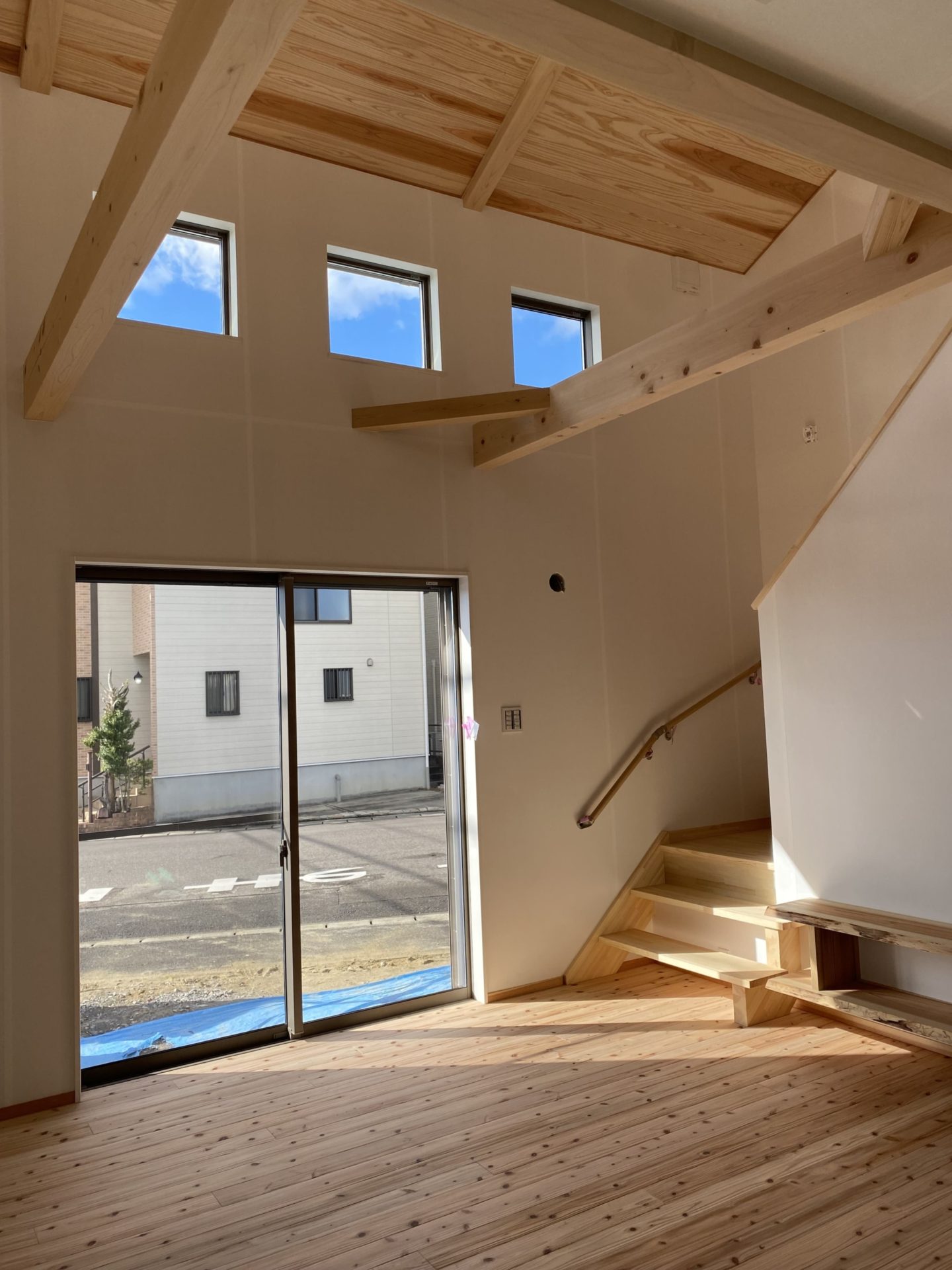 工事足場が取れて内装のクロスや和紙が貼られて完成間近でした👏
