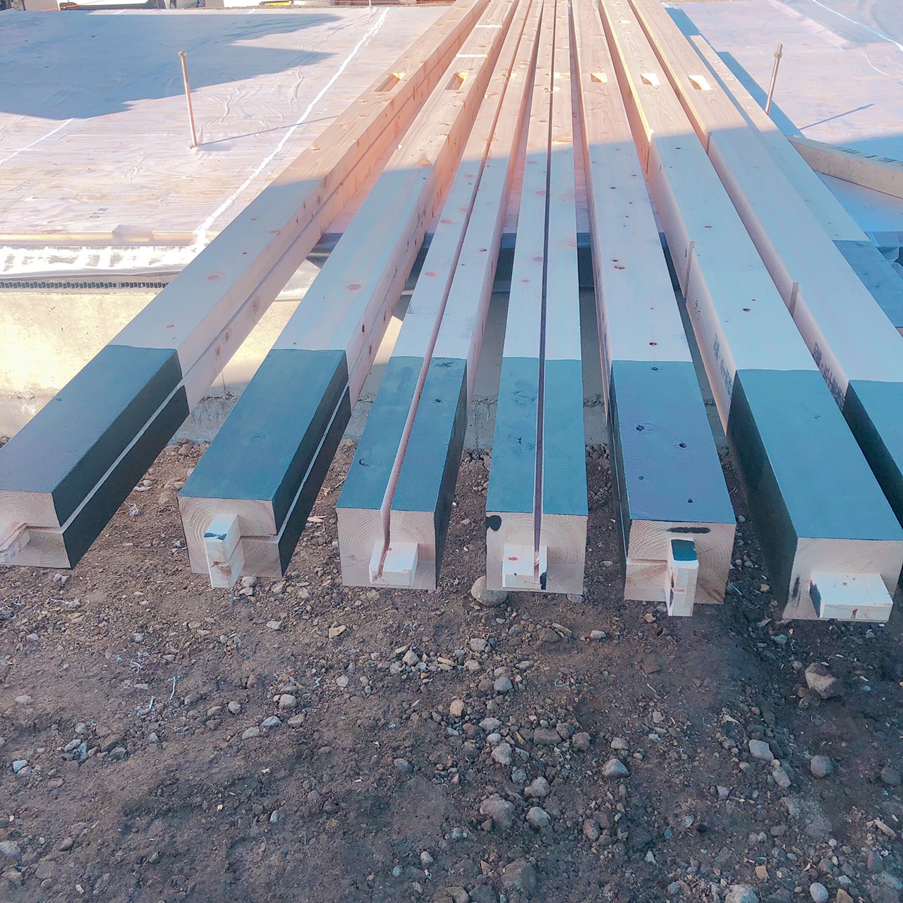 前回、土台のすみ塗りをした犬山市の現場の柱のすみ塗りです♬