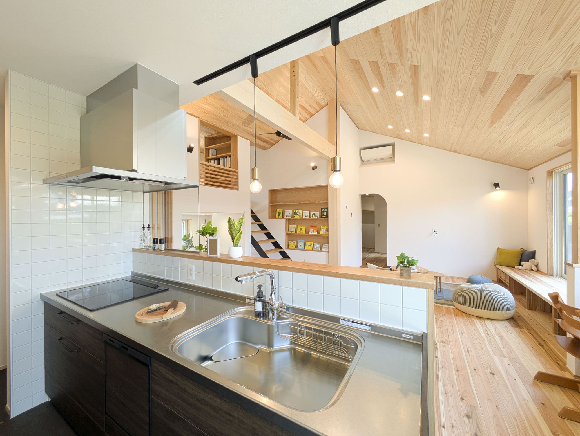 キッチンはダイニングと横並びで配膳がラクラクです!