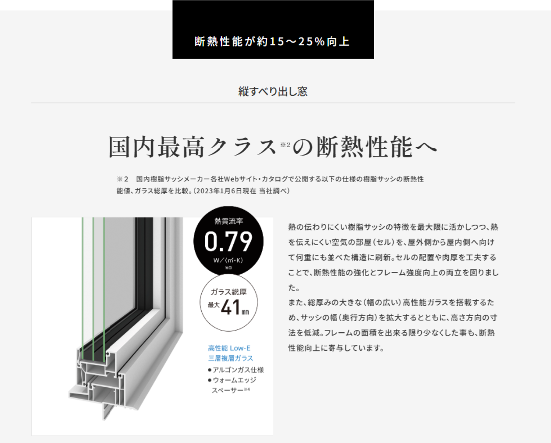 他メーカーの樹脂サッシを上回る性能をもっています。