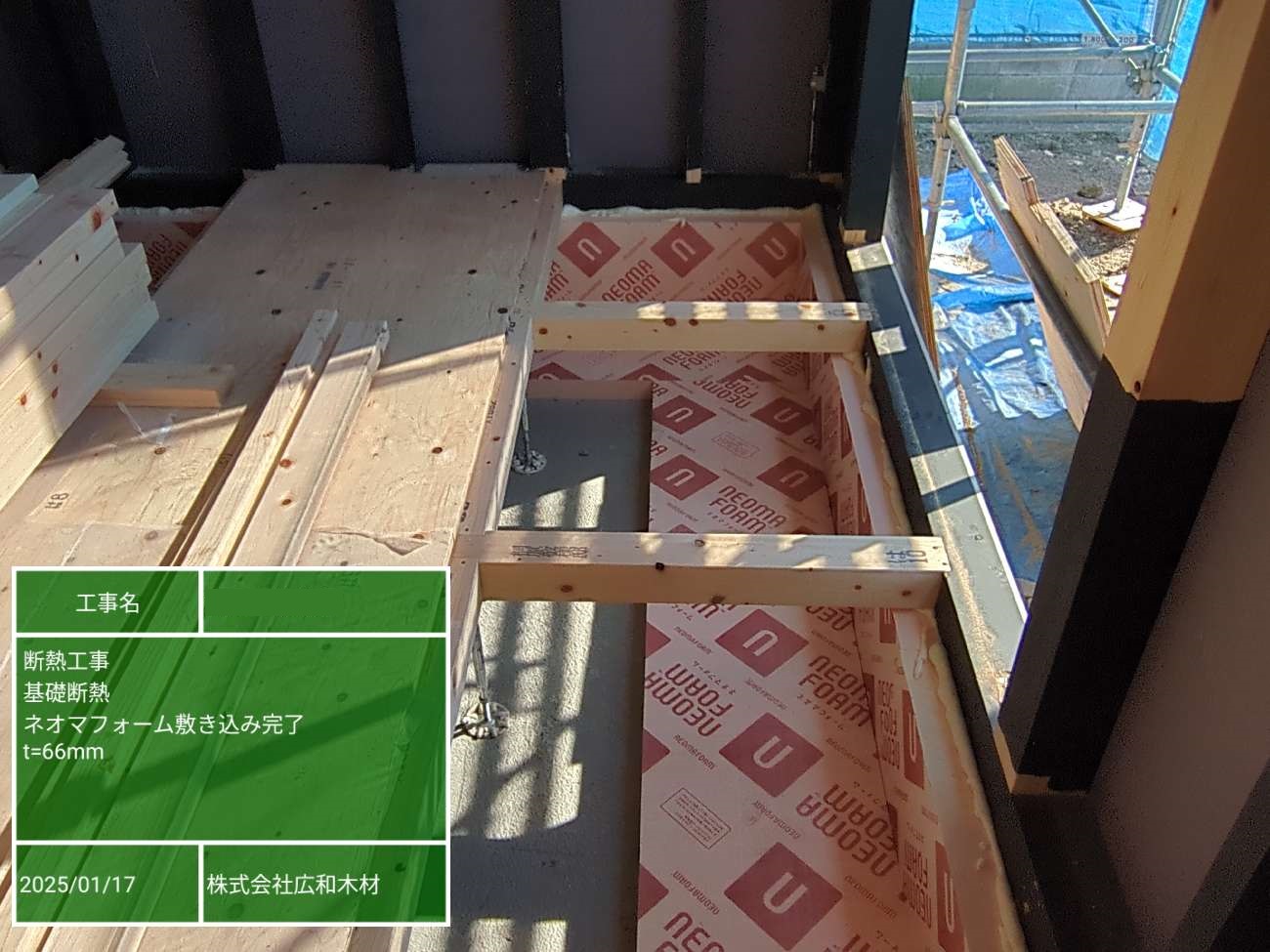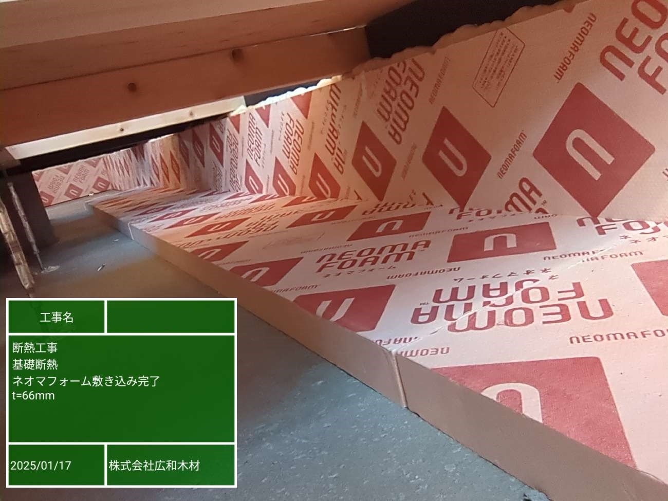 広和木材では熱抵抗値が0.02と高性能なネオマフォームという断熱材を使用しています。