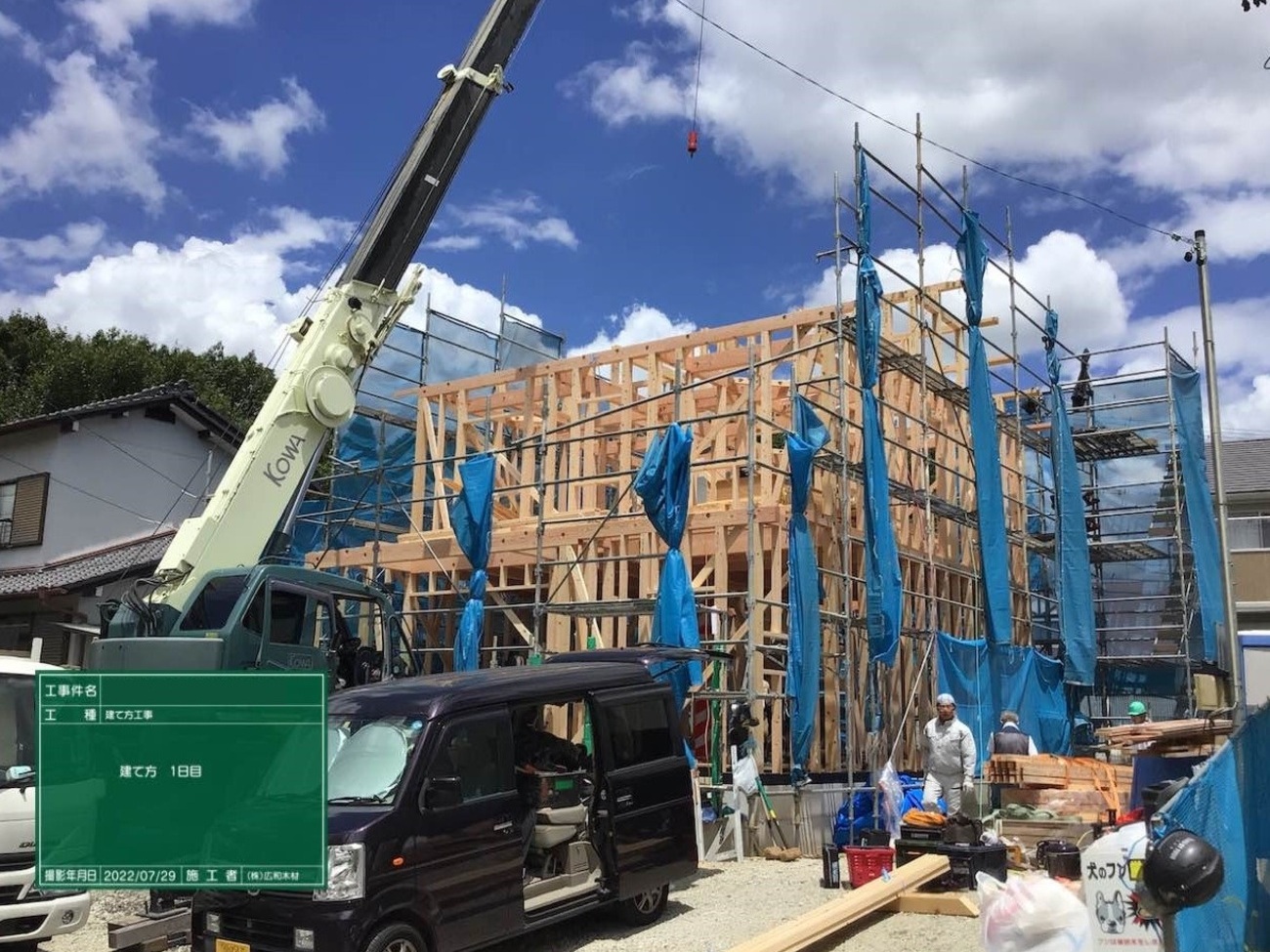 (建て方の時の天候は、いつもドキドキです・・・。)