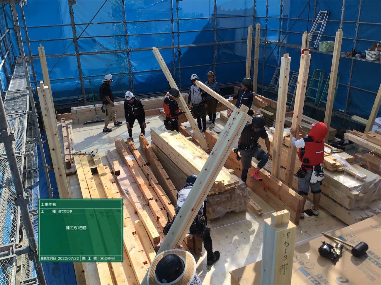 2日目は、天候に恵まれ、順調に建て方が進み、ほっとしました!