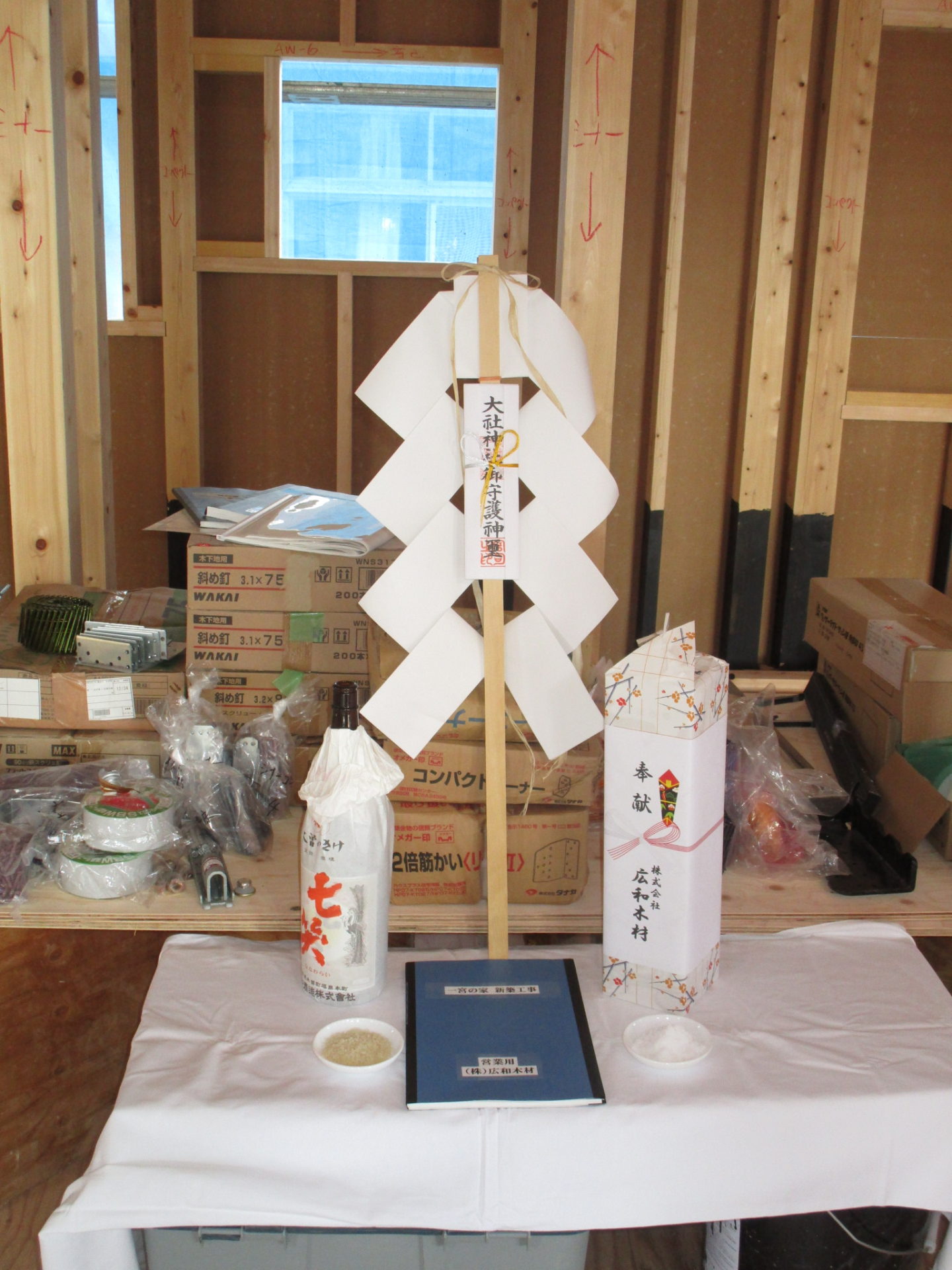 今回はコロナもありますので食事は無し、上棟式のみ執り行いました。