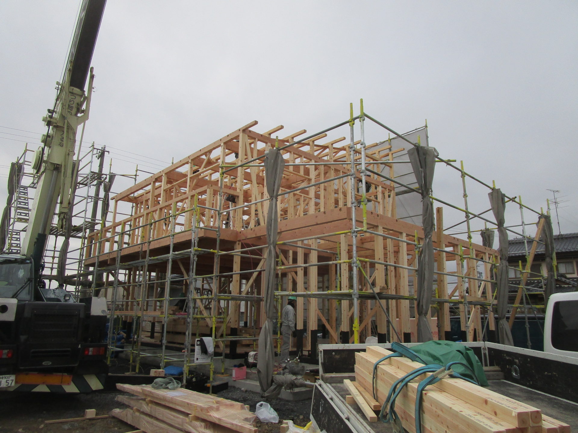当日朝は天気も良く上棟日和!しかし午後より天気が・・・
