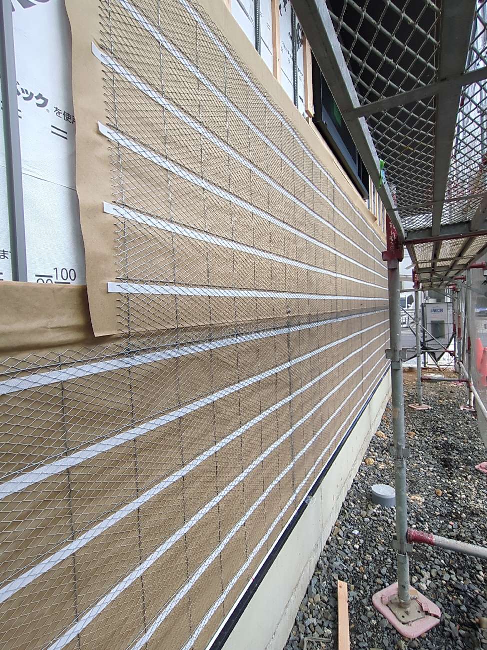 ↑モルタルを塗るために金網(ラスメタル)を張ります