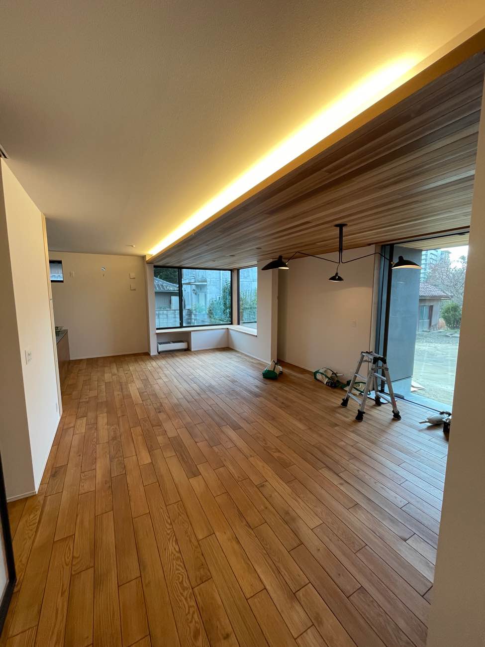 照明は元々ダウンライトの予定でしたが、大きな穴をあけると