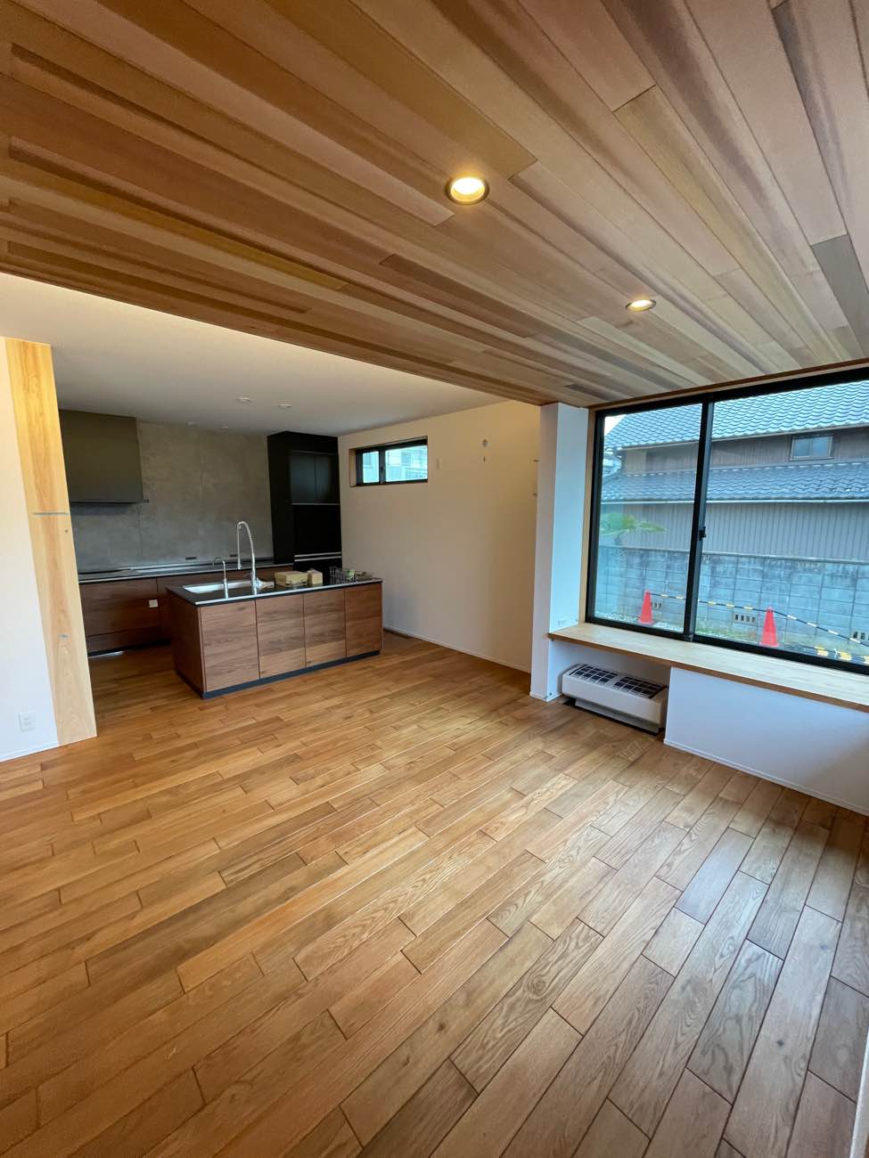 天井の一部には、レッドシダーという北米針葉樹の羽目板を施工しています!