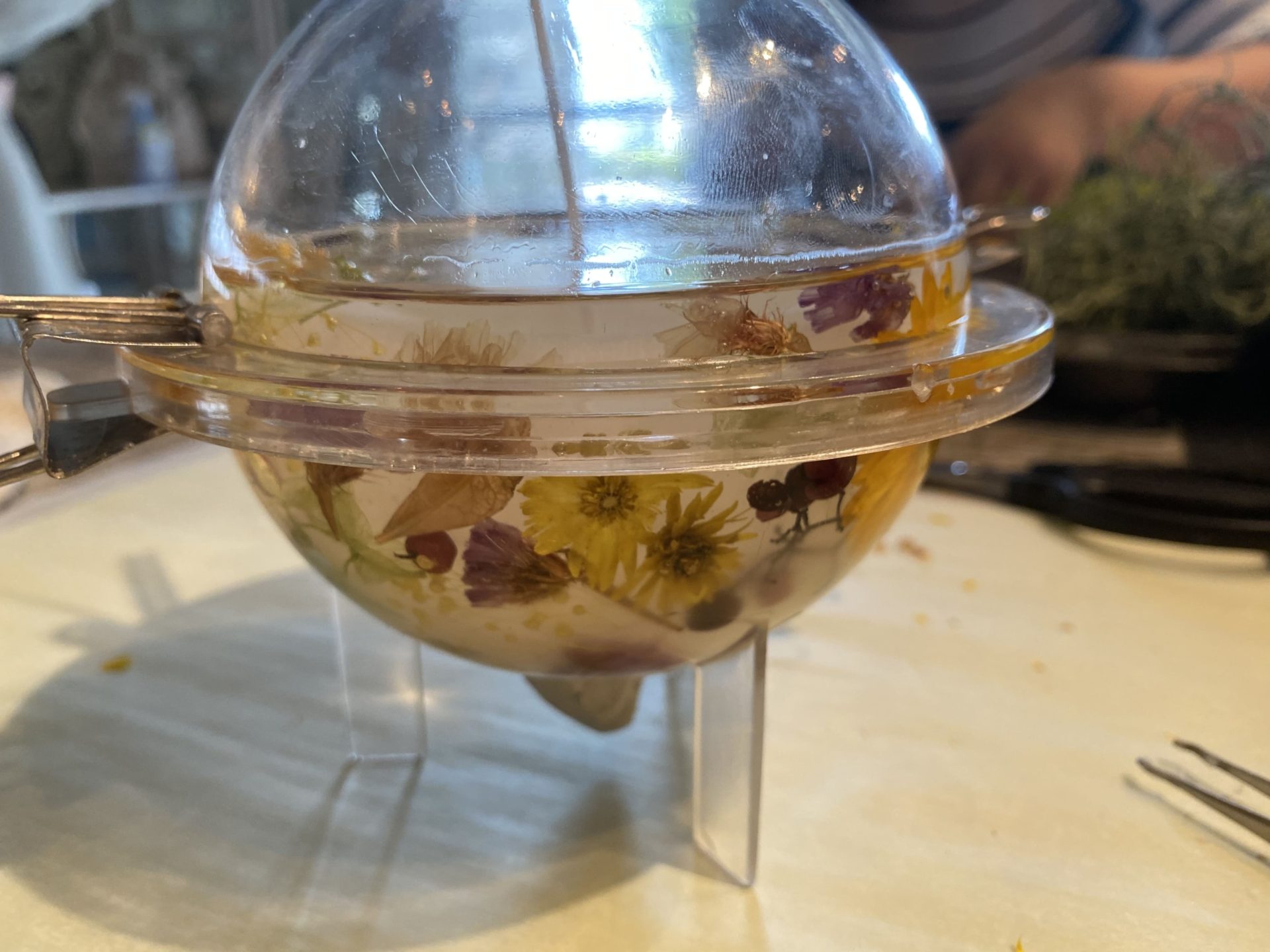 最初に好きなドライフラワーやドライフルーツを選んで型に配置していきます!