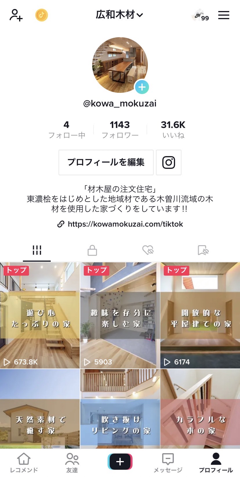 今回は広和木材のSNSの1つTikTokについてお話します。