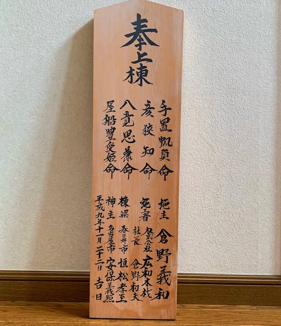 こちらの棟札は和夫会長が我が家の上棟の際に書いてくれた棟札で、(いい夫婦の日~!!)