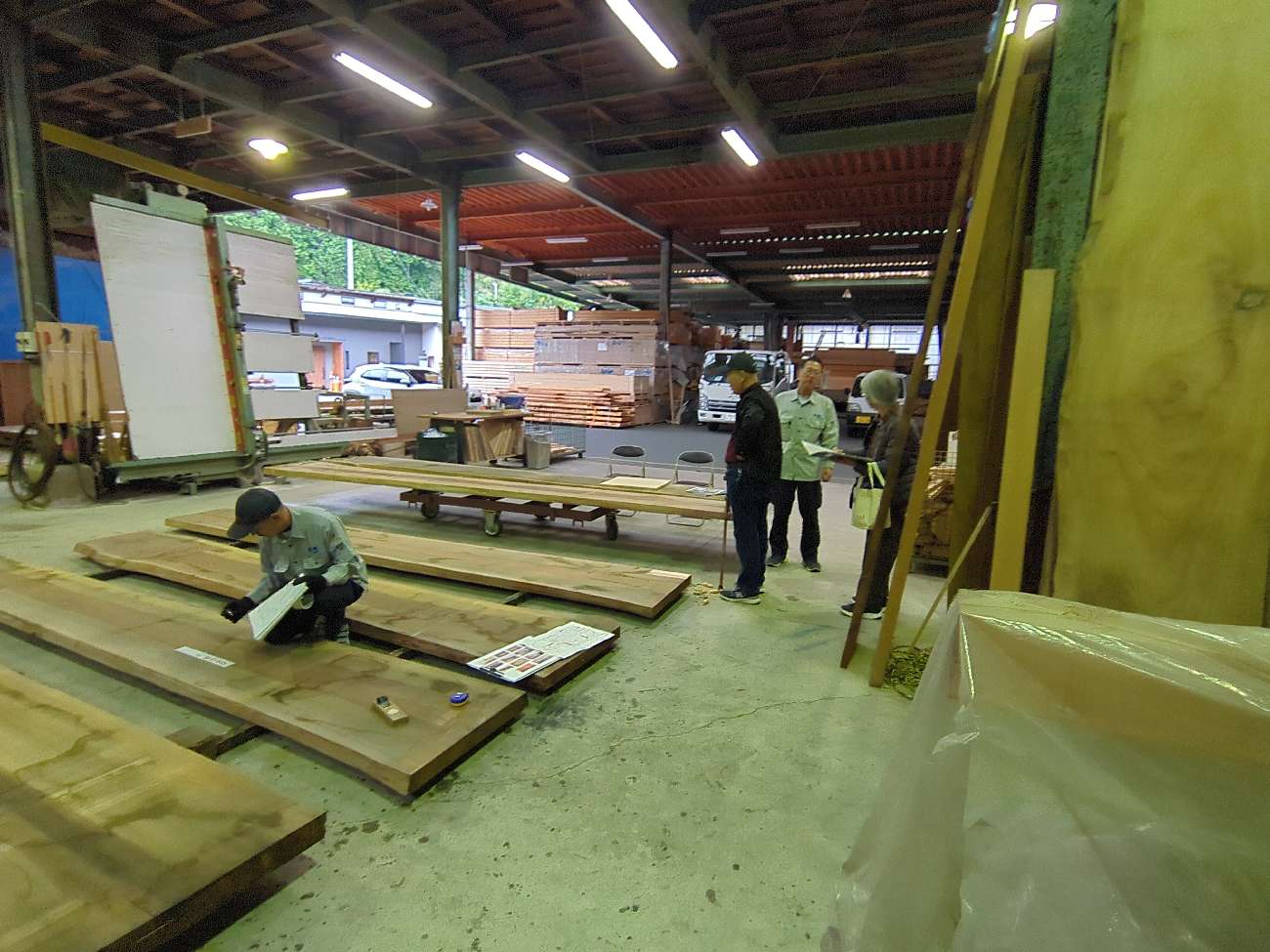造作も順調に進んでおり、造付け家具作製に使用する無垢板材のご選定に中津川の本社へ