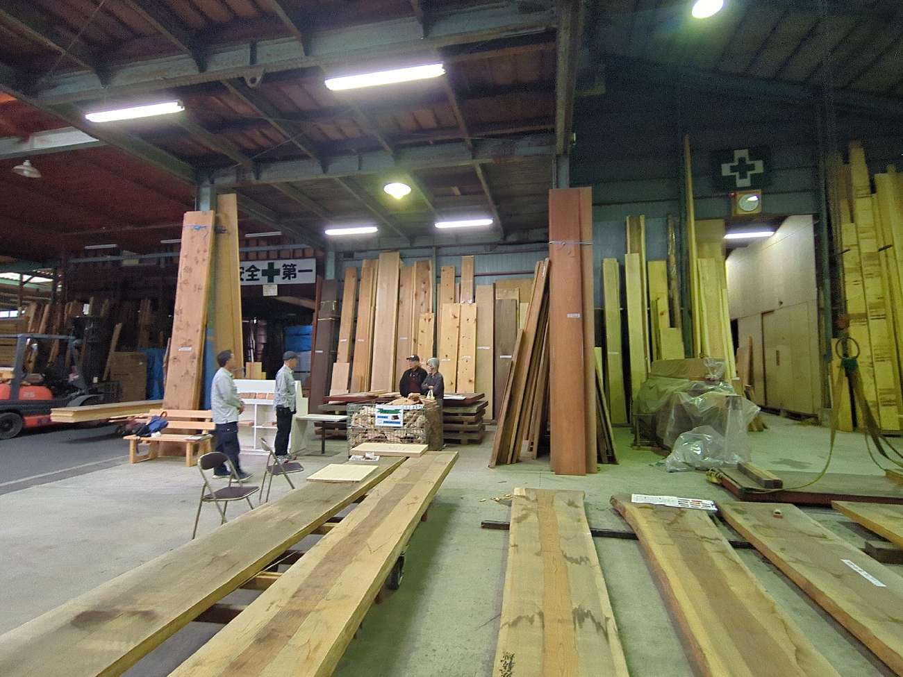 ご提案商材は、事前に製材部の方がご見学いただきやすいよう、工場に並べてくれています。
