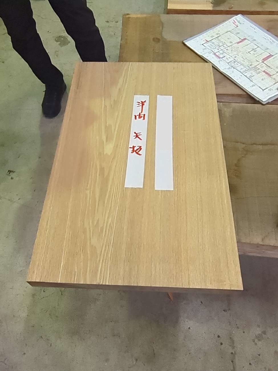 ケヤキ(床の間の地板柄にも採用されます)の一枚板でご選定いただきました。
