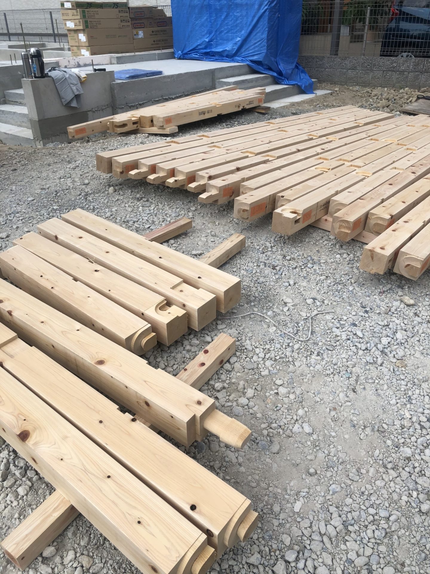 2日目は土台伏せが終わり、柱のすみ塗です。