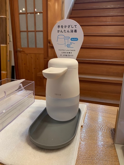 まずは本社・支店ともに入口付近へ自動手指消毒器を設置しました。