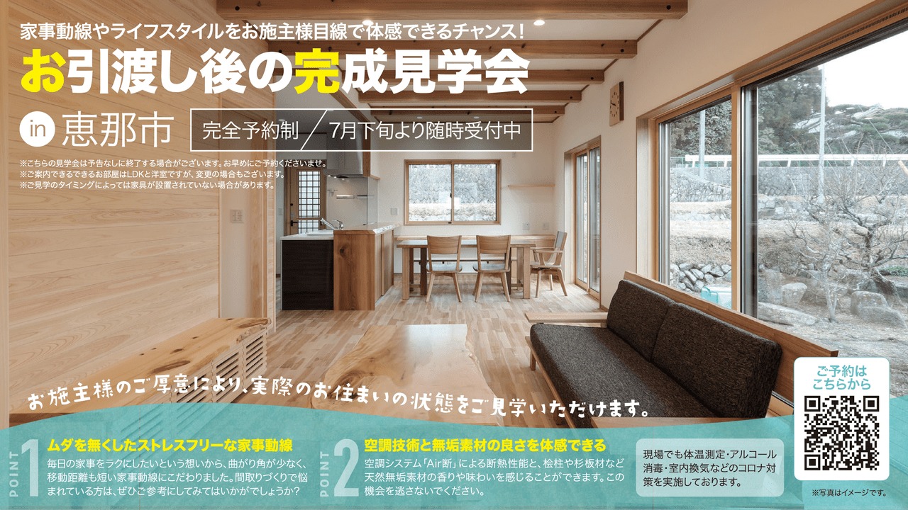 長島町の家 予約制お引き渡し後完成見学会|7/下旬~8/上旬 |岐阜県恵那市で開催!