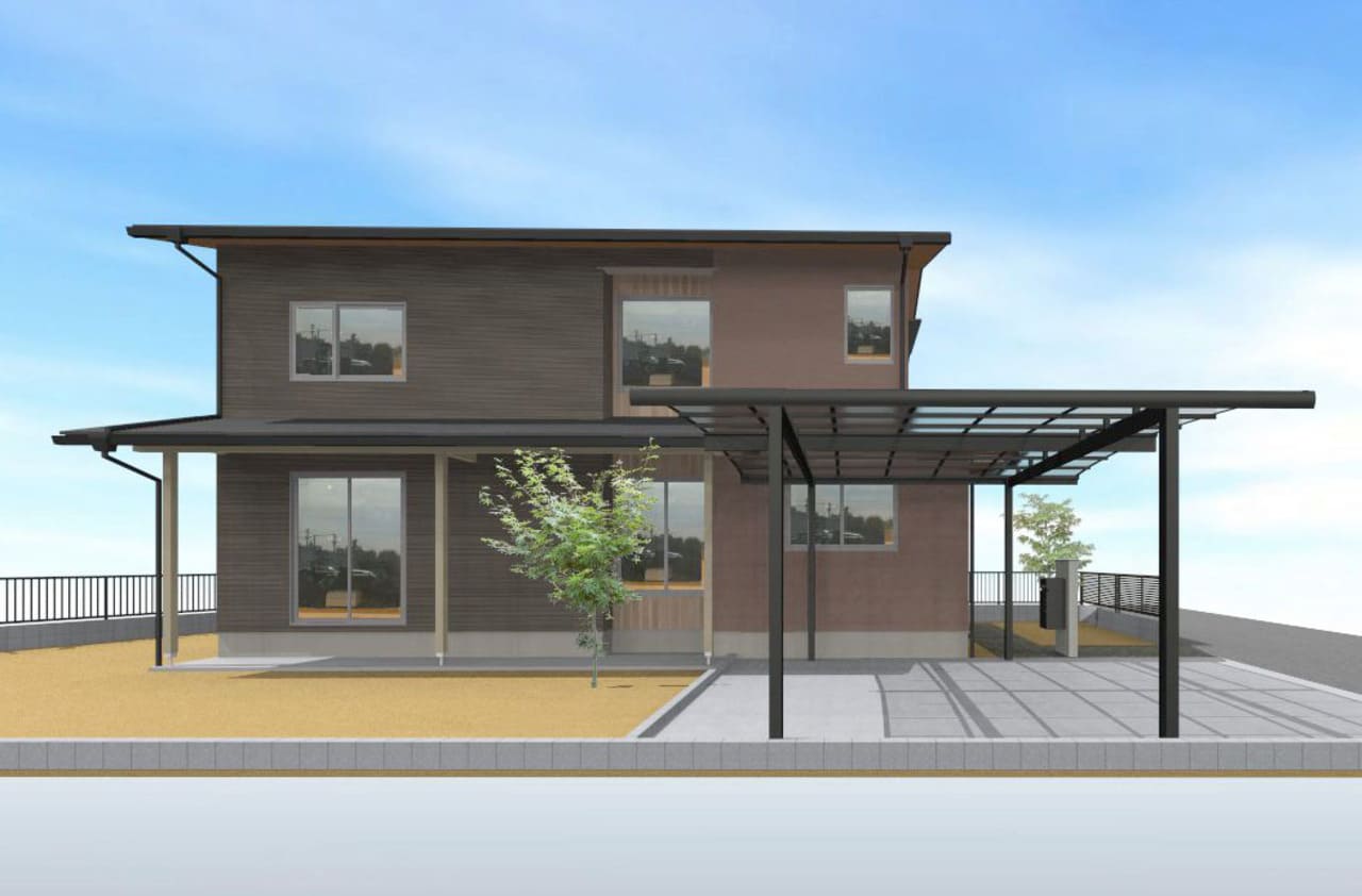 塗り壁×天然木×サイディングを掛け合わせた、どこか懐かしさも感じられる外観デザイン。